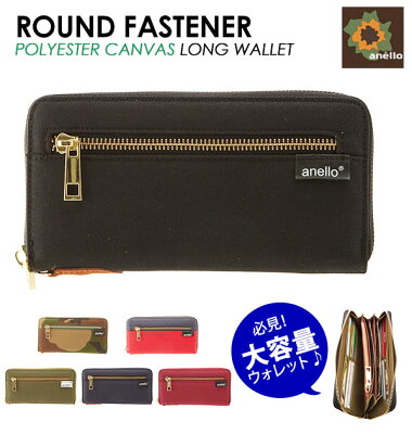 anello 財布/ポリキャンバス ラウンドファスナー 長財布 /レディース メンズ ラウンドジップ 長サイフ 財布 小銭入れあり 女性 かわいい おしゃれ ネイビー ブラック トリコロール フランス 黒 迷彩 3色/anello アネロ AT-B0199 正規品 ブランド