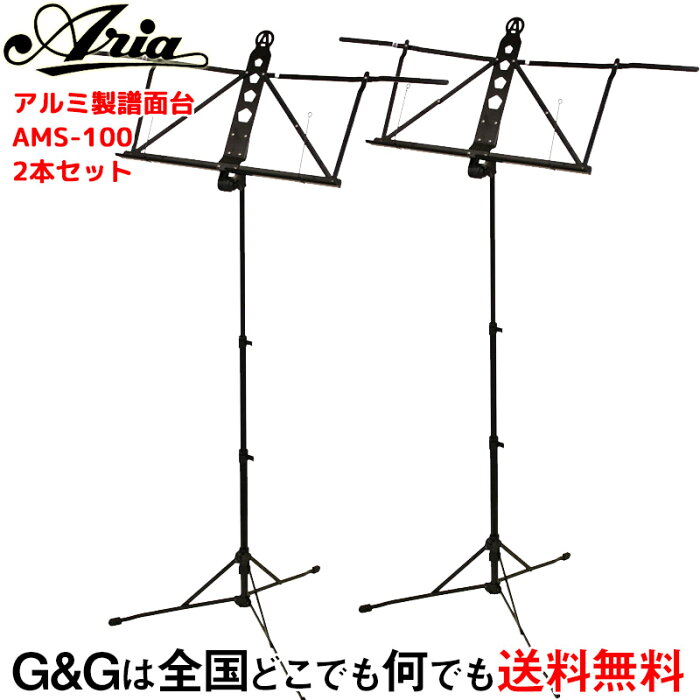 【2 Set】アリア 軽量 折りたたみ アルミ製 譜面台 Aria AMS-100 2本セット 収納ポーチ付きミュージックスタンド
